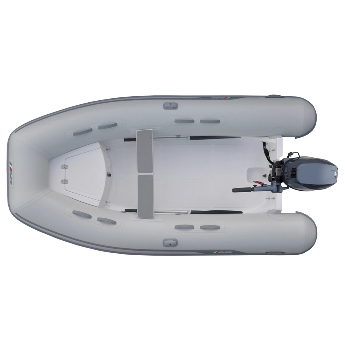 The AB Navigo 10 VS RIB is a spacious fiberglass deep-V tender with a forward-hull design, modular seating options, and durable Hypalon tubes—ideal for family cruising, beach trips, and charter operations.