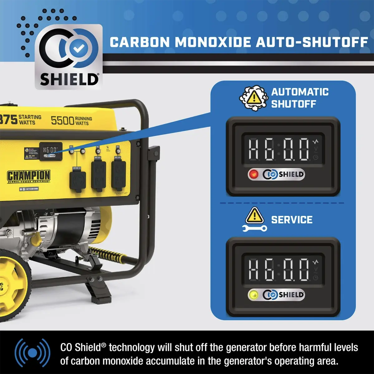 The Champion 5500 Watt Portable Generator provides reliable gasoline-powered electricity for home backup, RV trips, and jobsite needs, featuring strong starting power, CO Shield safety, and a durable open-frame design.