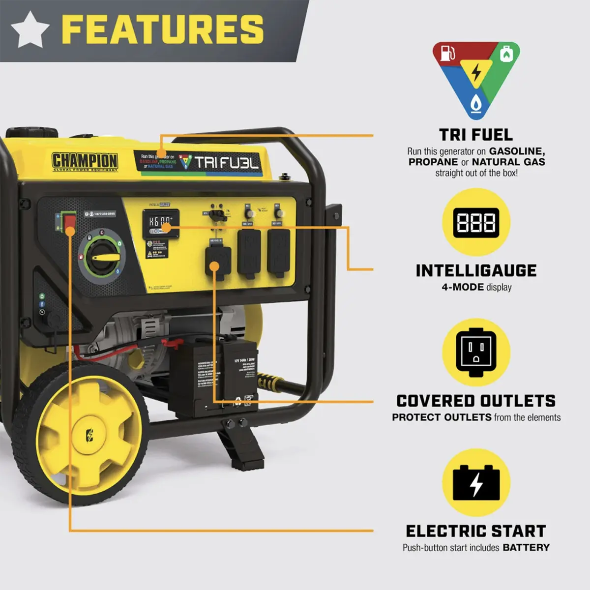 • Champion 6500 Watt Tri Fuel Portable Generator