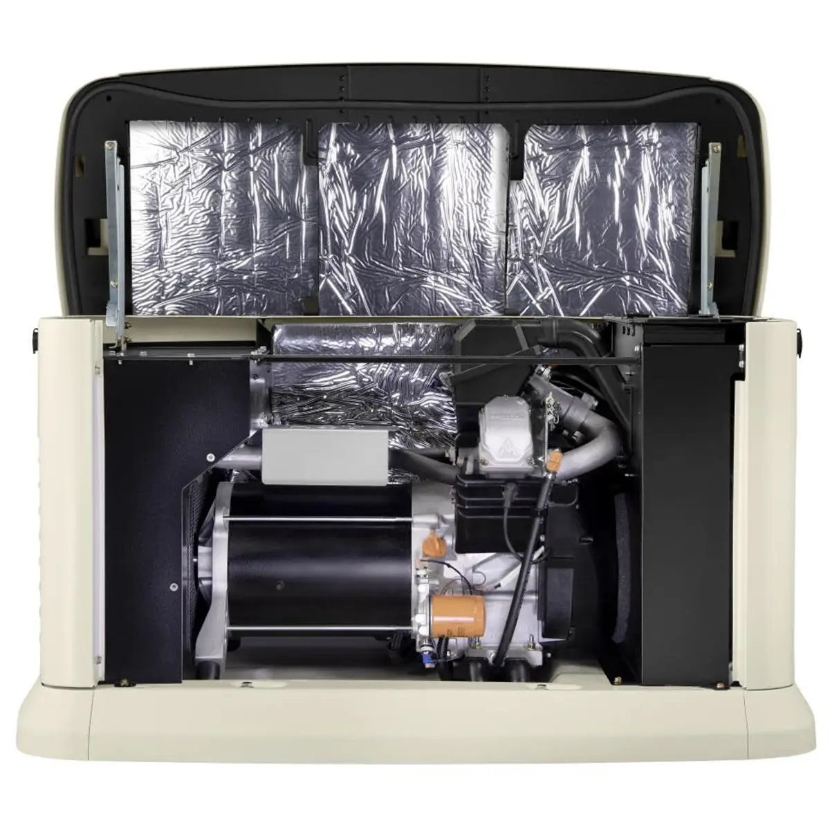 It connects directly to natural gas or propane systems, allowing extended runtime without refueling.