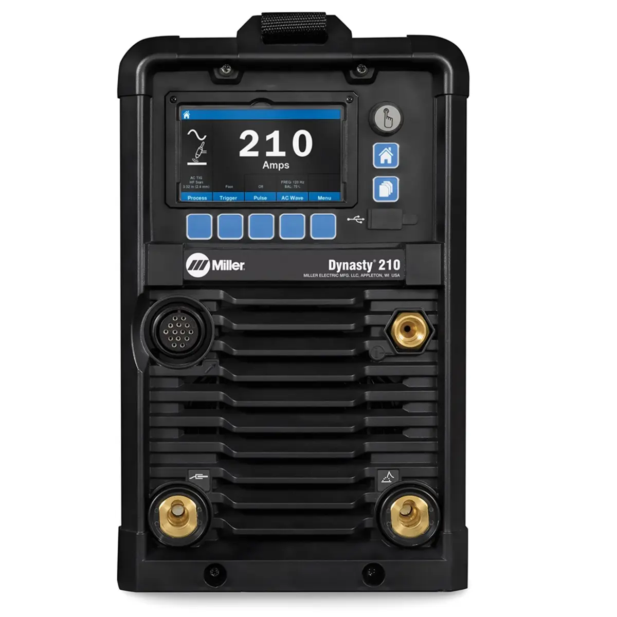 The Miller Electric Dynasty 210 TIG Welder is a compact AC/DC TIG and Stick welding machine designed for precision aluminum, stainless steel, and specialty metal welding across a wide range of power inputs.