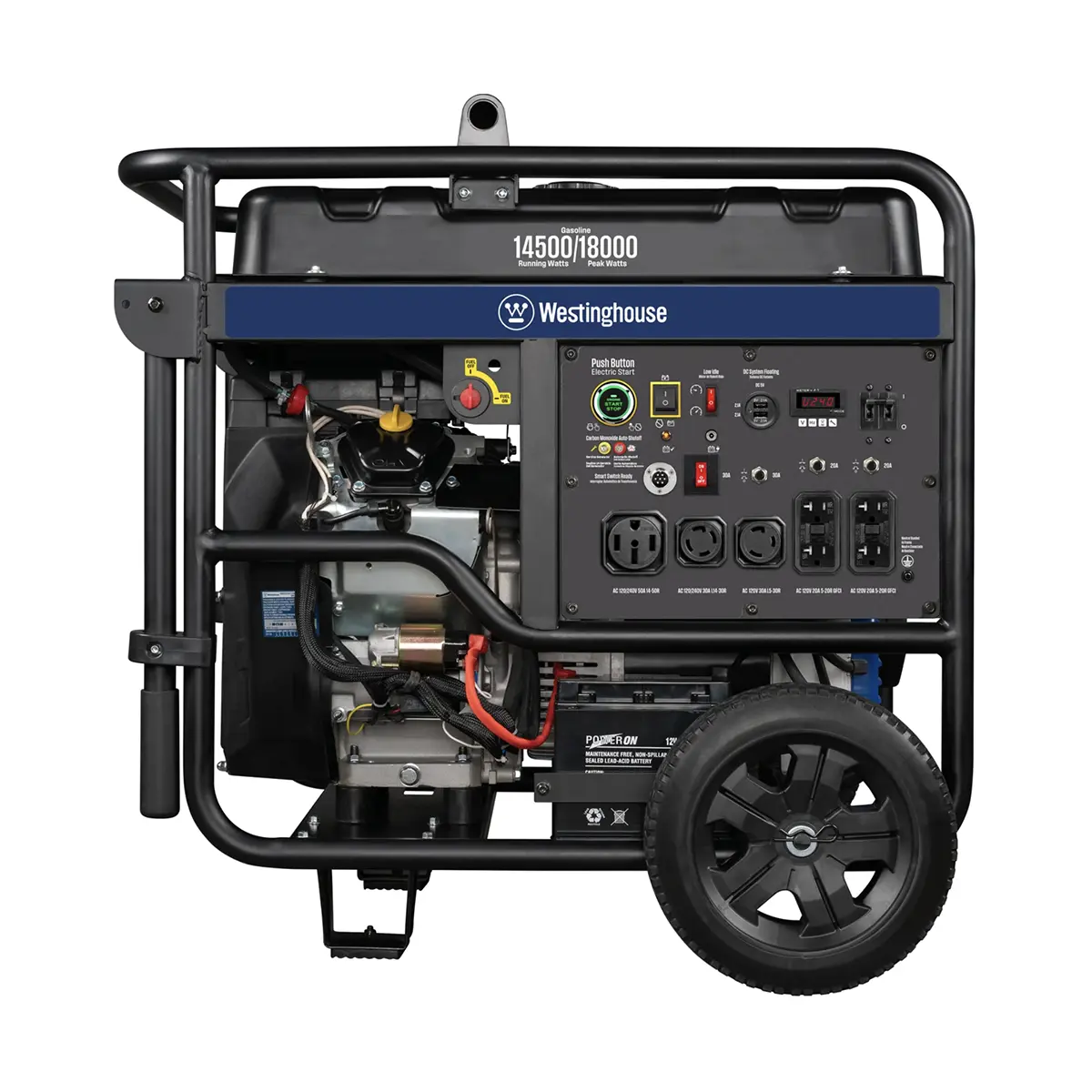 The westinghouse WGen14500c portable generator is an ultra-duty gasoline generator engineered for demanding backup power applications. Designed for larger homes, job sites, and extended outages, it provides the strength to run major appliances and essential circuits simultaneously. With transfer switch readiness, built-in CO safety, and a powerful V-Twin engine, it delivers dependable performance when uninterrupted power is critical.