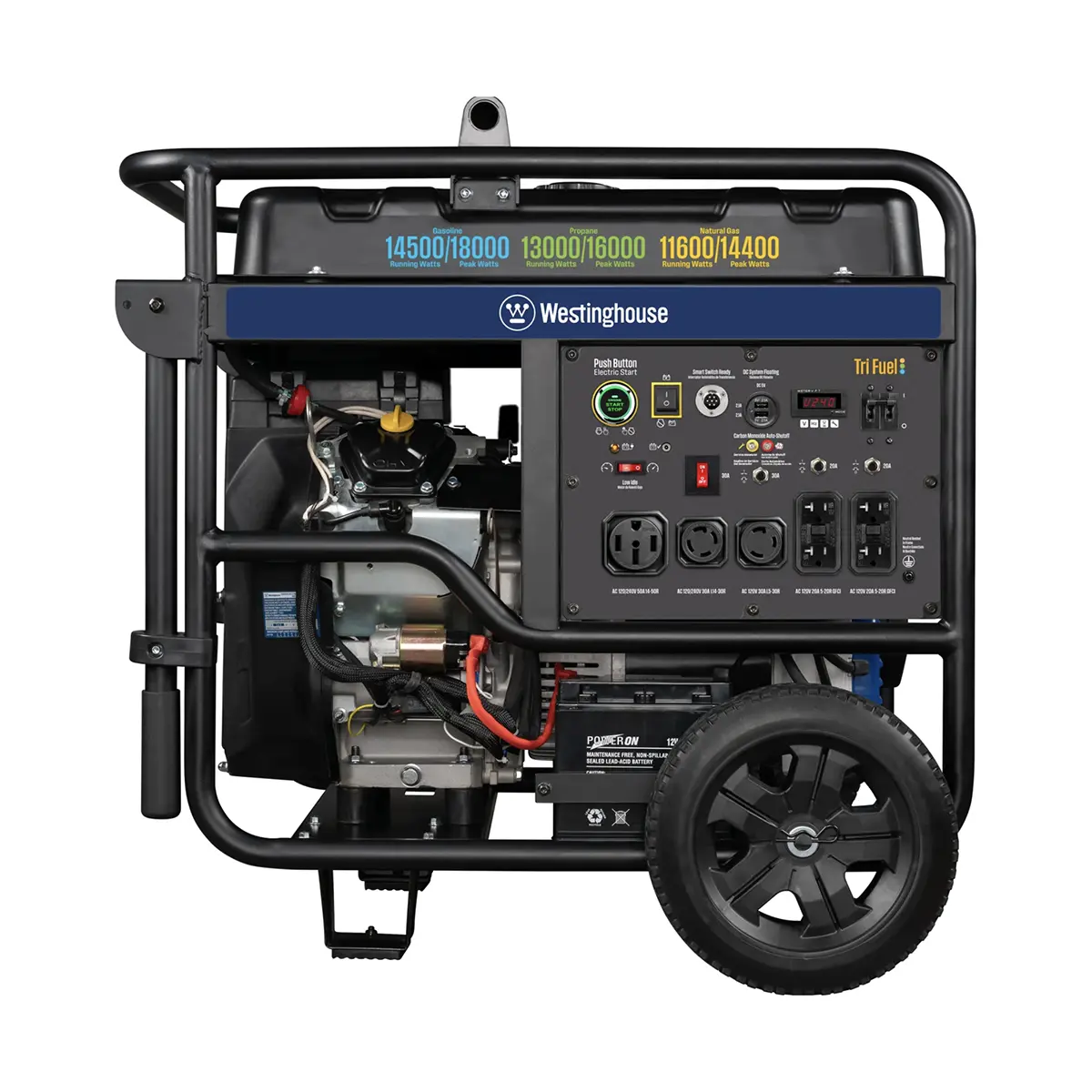The westinghouse WGen14500TFc portable generator delivers powerful tri-fuel performance for large homes, combining gasoline, propane, and natural gas operation with CO protection and transfer switch readiness.